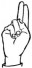 На ћирилици написано КРСТИМИР ВЕЉИЋ састоји се из 13 слова [?]. Исписано ћириличном једноручном азбуком за глувонеме: